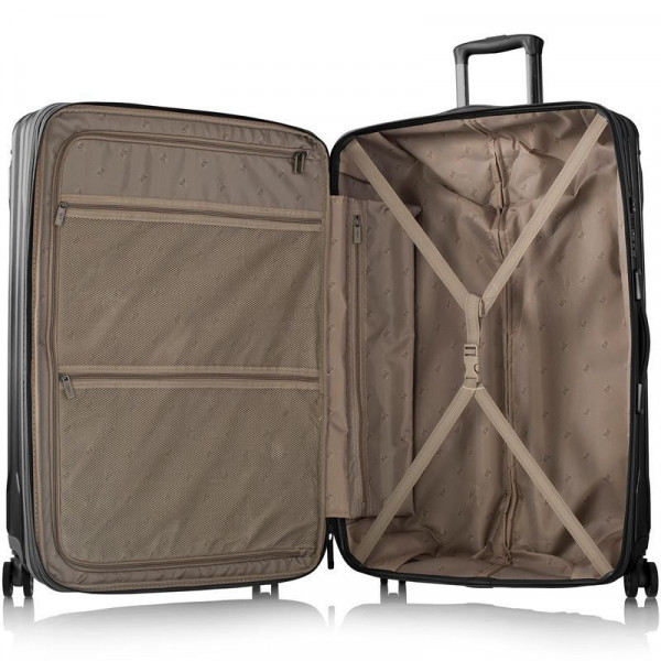 Основне відділення має розділювач на блискавці з двома сітчастими кишенями та два еластичні ремені для фіксації речей, що закріплюються застібкою. Валіза обладнана фірмовим кодовим замком з функцією митного огляду TSA та чотирма спареними повно поворотними колесами з можливістю незалежного розвороту кожного колеса на 360°. Системою передбачено рівномірний перерозподіл навантаження на кожне колесо, що своєю чергою сприяє плавному коченню та маневровості валізи. Є можливість збільшити корисний об єм валізи до 20% завдяки наявності розширювального клапана.