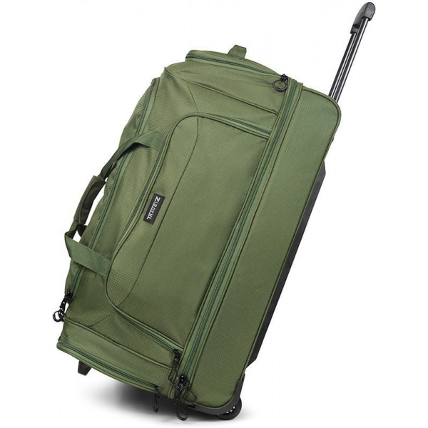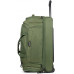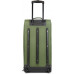Сумка дорожня на колесах TravelZ Wheelbag Doubleloader green (603099) - дорожня сумка з м яким корпусом, на колесах, об'ємом 96 літрів із телескопічною ручкою. Завдяки двом містким боковим кишеням і великому основному відділенню з U-подібним отвором цю сумку зручно використовувати, а її об'єм не поступається великій валізі. Велике нижнє відділення об'ємом близько 25 літрів можливо використовувати для взуття. Якщо сумка заповнена речами, то вона може стояти вертикально, завдяки спеціальній підставці з лівого боку. Ручки по обидва боки дозволяють легко підійняти сумку. Утоплені колеса вбудовані в тверду опорну пластину з протекторами. Висувна ручка регулюється у двох положеннях до 95 см і це зручно для людей високого зросту.